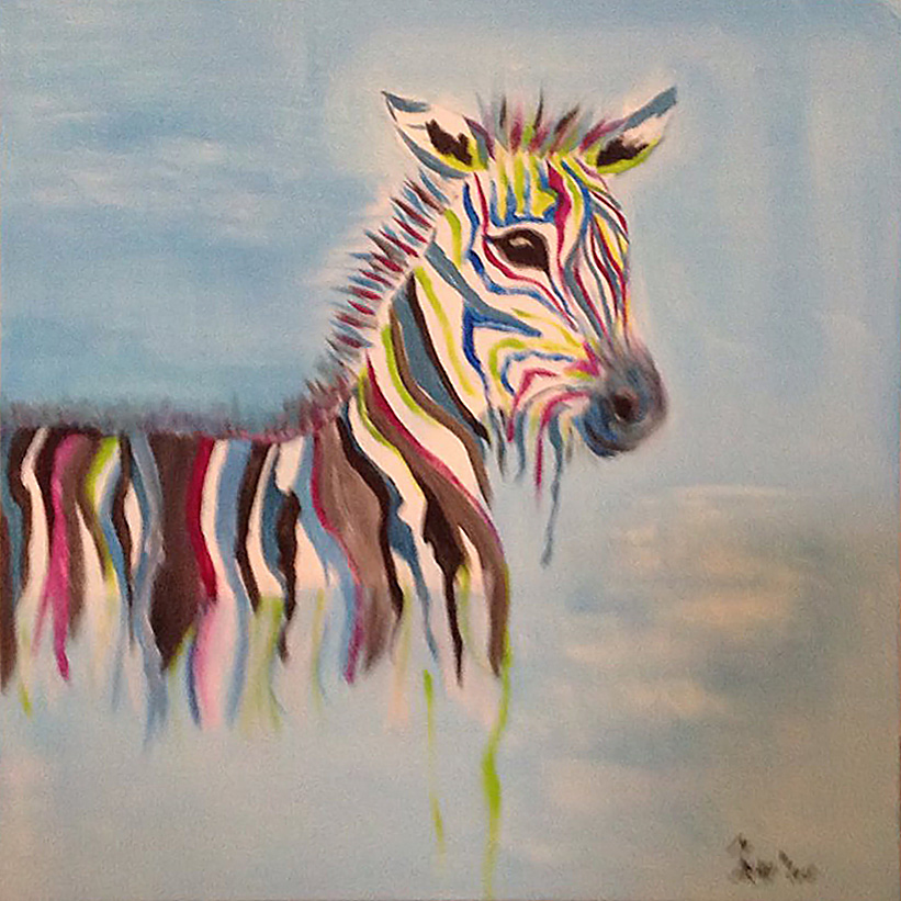 Een globale impressie van het schilderij "Er gekleurd opstaan" 50x50cm.