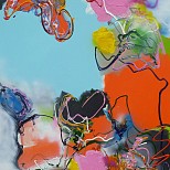 Een globale impressie van het schilderij "Bye bye Birdie" 120x150cm.