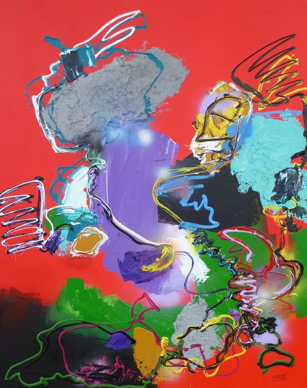 Acryl / mixed op linnen - abstract expressief werk - inclusief baklijst - kleurrijk