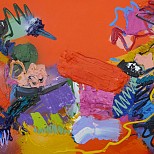 Acryl / mixed op verpakkingskarton (honingraat) - abstract expressief werk - kleurrijk - prijs is per stuk