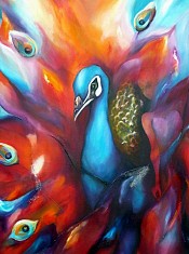 Een globale impressie van het schilderij "Pauw" 80x100cm.