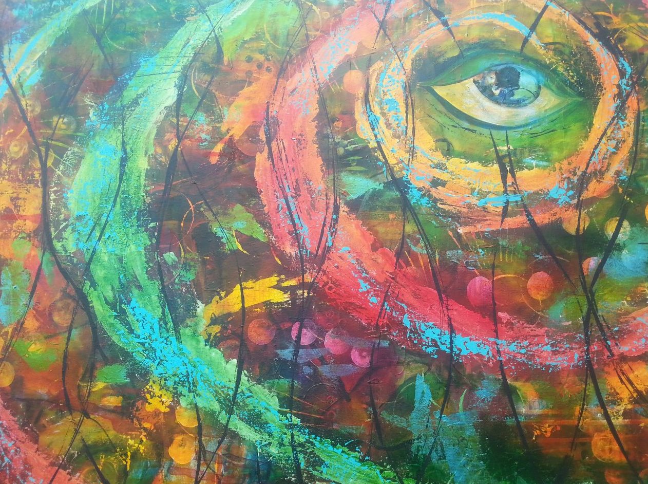 Een globale impressie van het schilderij "Eye of the hurricane" 120x80cm.