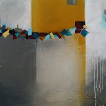 Een globale impressie van het schilderij "Rozenknop" 30x30cm.