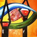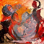 Een globale impressie van het schilderij "A la Kandinsky" 100x70cm.