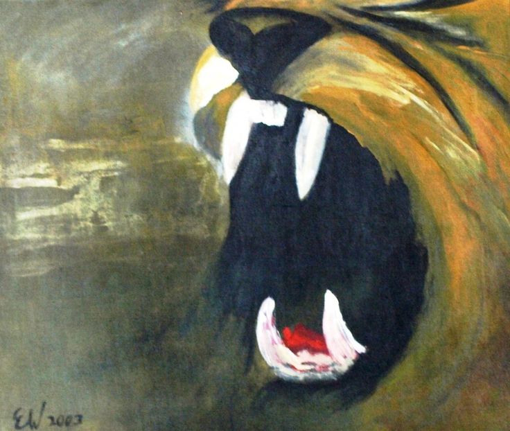 Leeuw. Acryl op doek, vrij geschilderd, zonder lijst.