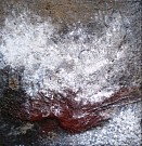 Materie schilderij in natuurlijke materialen en pigmenten. Met aarde,zand, lei, vlas, mos, water en vuur bewerkt