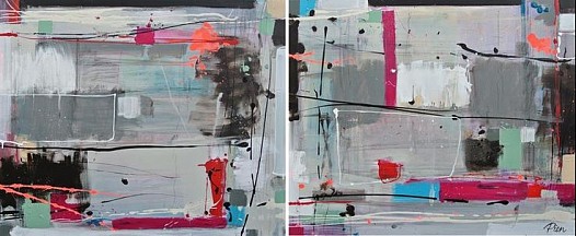 Dit is een schilderij die een nieuwe start verbeeld. Na een vervelende tijd, ga je laagje voor laagje verder en begint de zon te schijnen. Er zijn donkere kleuren gebruikt om de vervelende tijd te verbeelden, de felle en vrolijke kleuren verbeelden de nieuwe herwonnen kracht en de positiviteit. Het is een twee luik die ook apart te koop is. De schilderijen kunnen horizontaal en verticaal opgehangen worden. Prijs voor één doek bedraagt €575,- Voor beide doeken €975