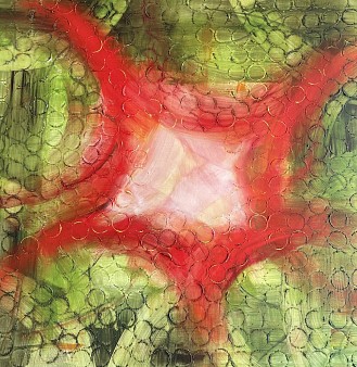 Een globale impressie van het schilderij "Movements 2021" 150x150cm.