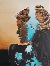 Een globale impressie van het schilderij "Waterworld Womane" 80x105cm.