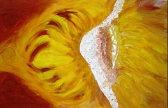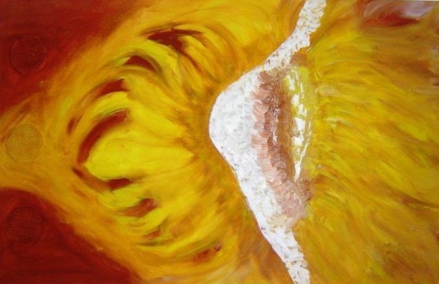 Hart van de zonnebloem. Vrij geschilderd, acrylverf