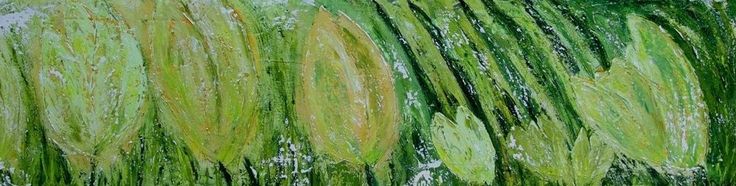 Een globale impressie van het schilderij "Abstracted tulips" 160x40cm.